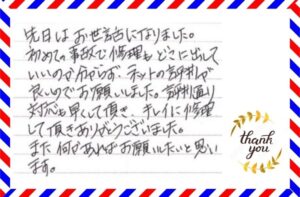 お客様の声 【修理内容】修理【車種】マツダ・デミオ【女性】
