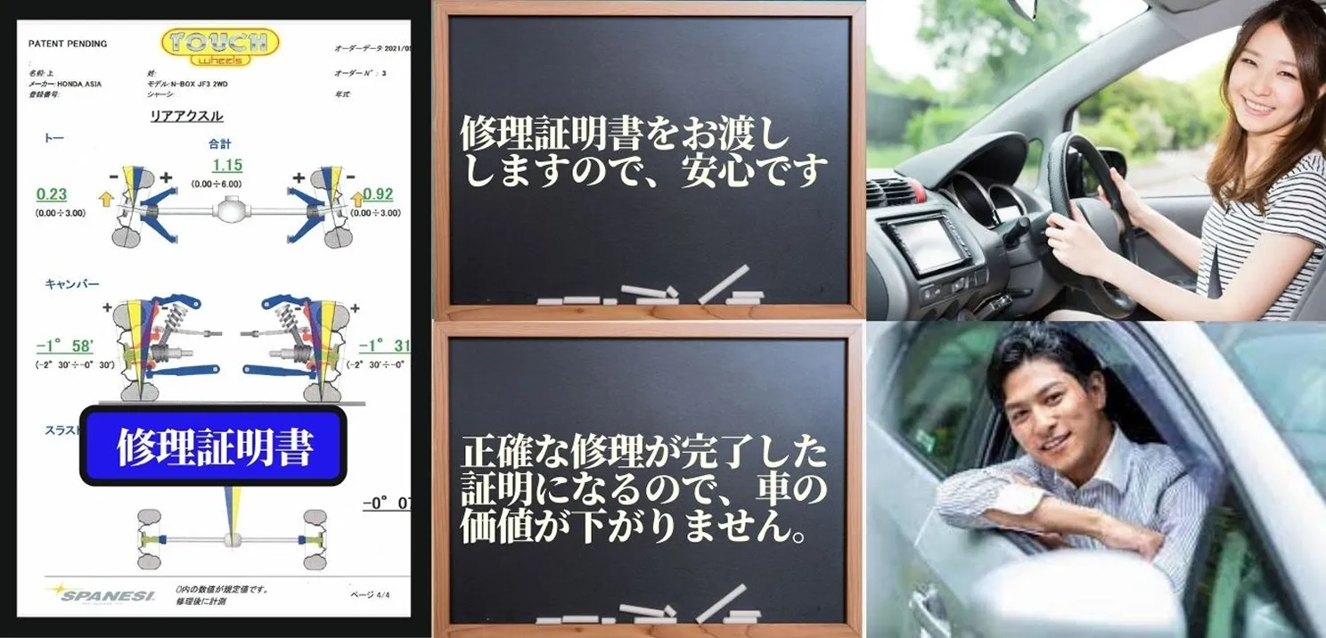 3次元計測で修理前と修理後のデータをお渡しますので、お客様にもきちんと修理されていることが、確認できますので、とても安心です。